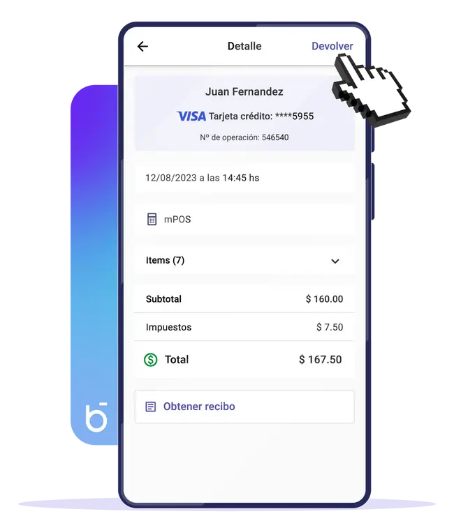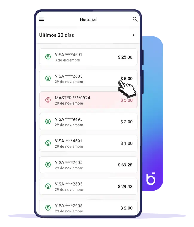 Escoge la transacción que quieres devolver.